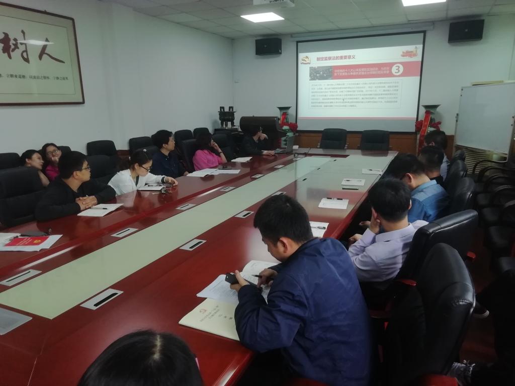 此次政治理论学习的主要内容有:1.学习习近平总书记在纪念五四运动100周年大会上的讲话精神;2.学习习近平总书记在深入推动长江经济带发展座谈会上的讲话精神;3.学习《中国共产党纪律处分条例》、《中华人民共和国监察法》;4.传达《beat365官网中文版本第二十个党风廉政建设宣传教育月活动方案》、学习《beat365官网中文版本党员领导干部“八不准”》。