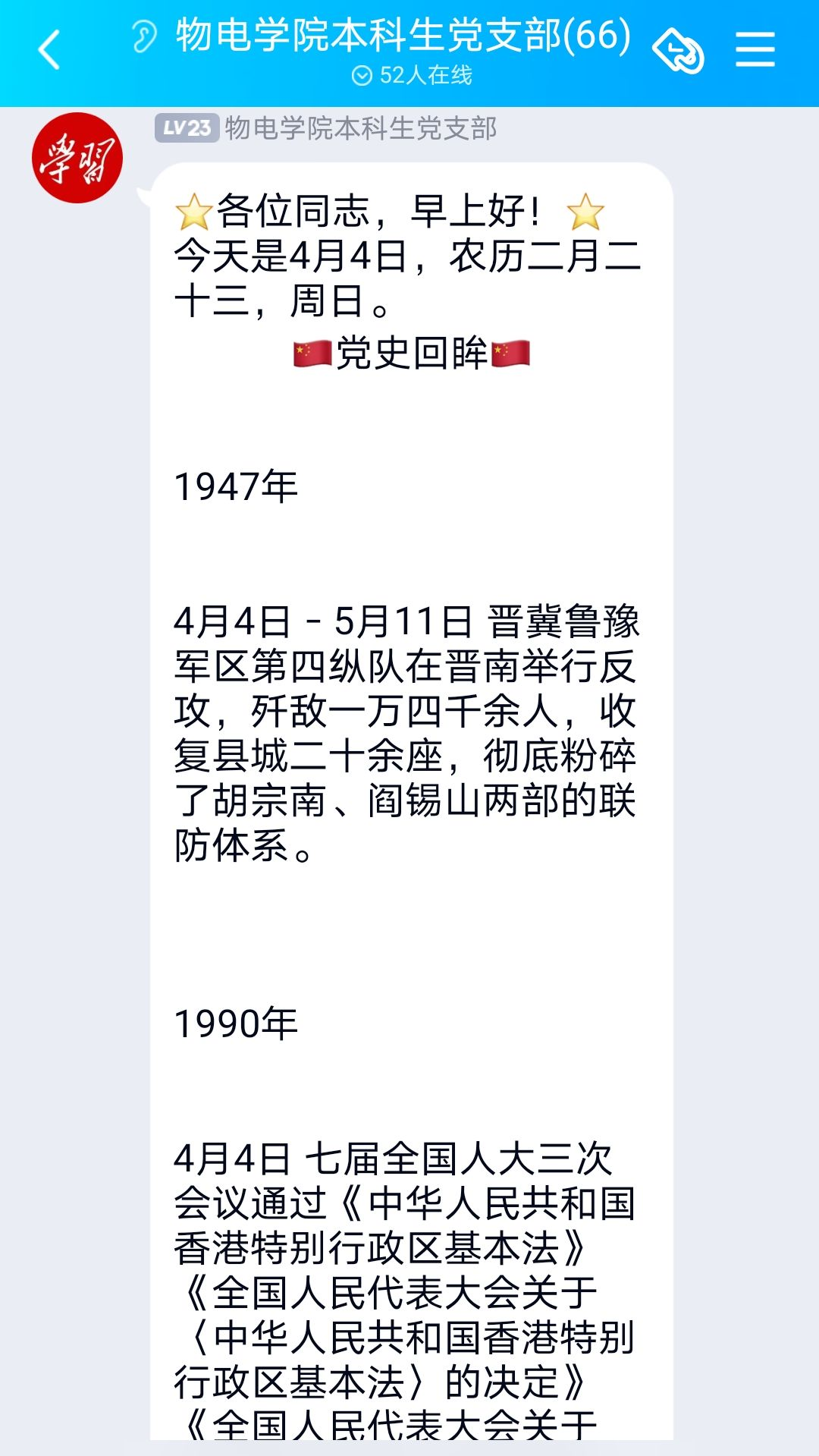 党支部特别推出《党史百年·天天读》栏目,这个栏目通过员工党员的党支部群每天为大家分享丰富的历史文献,翔实记录党带领人民不懈奋斗的光辉历程,集中展现党和国家主要领导人的重要论述和理论观点,系统反映党的思想理论创立、发展和完善的历史进程。