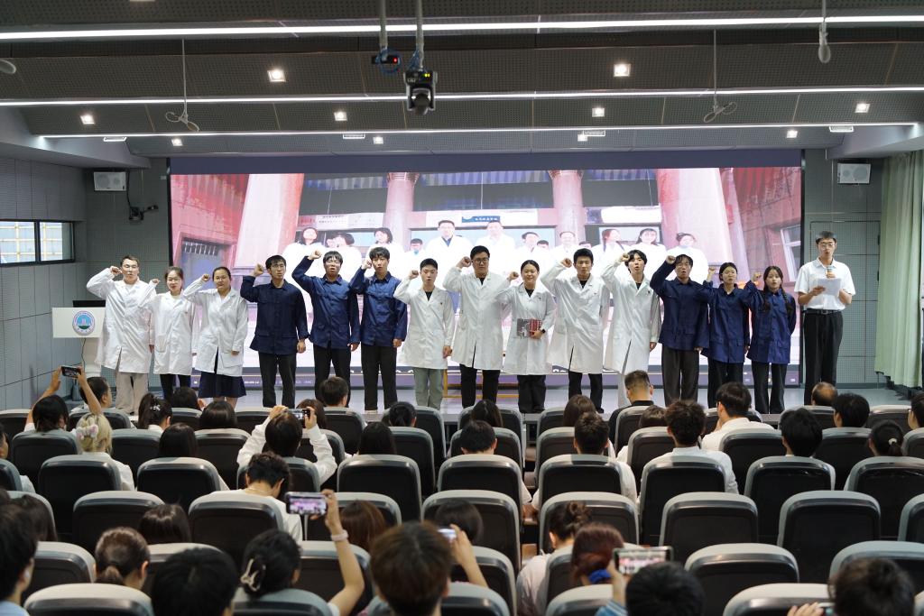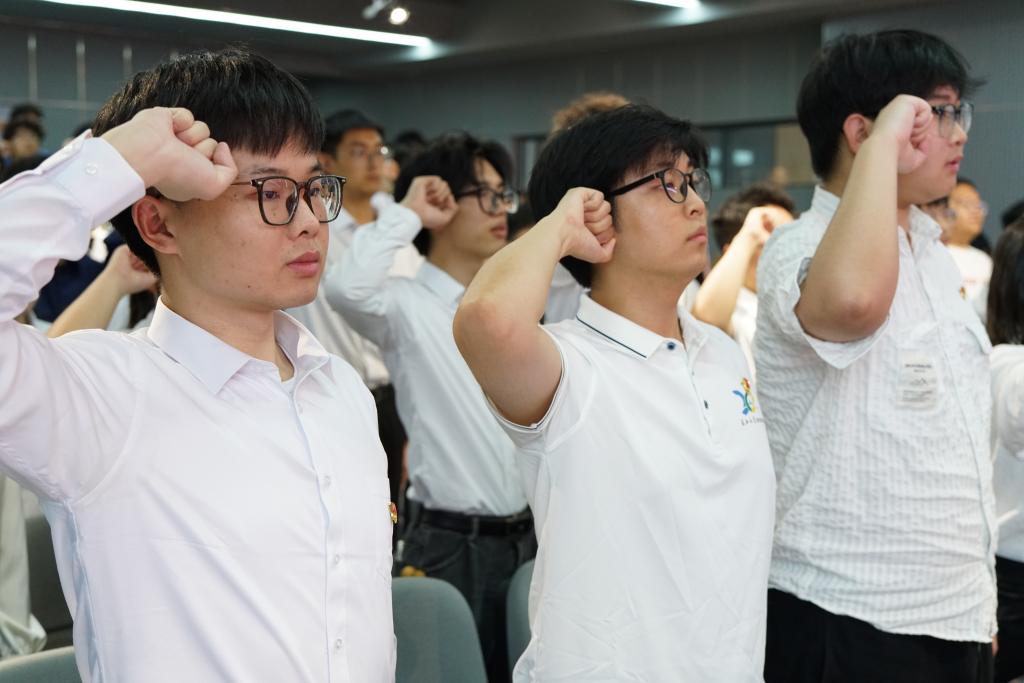 活动以庄重的重温入党誓词开始。本科生党支部委员蒋文晗同志作为领誓人,带领全体党员面向党旗庄严宣誓。铿锵有力的誓言回荡在报告厅内,既是党员对党和人民许下的郑重承诺,更是镌刻于心的信仰之约,激励着在场师生无论何时何地都要以誓言为指引,践行初心使命。