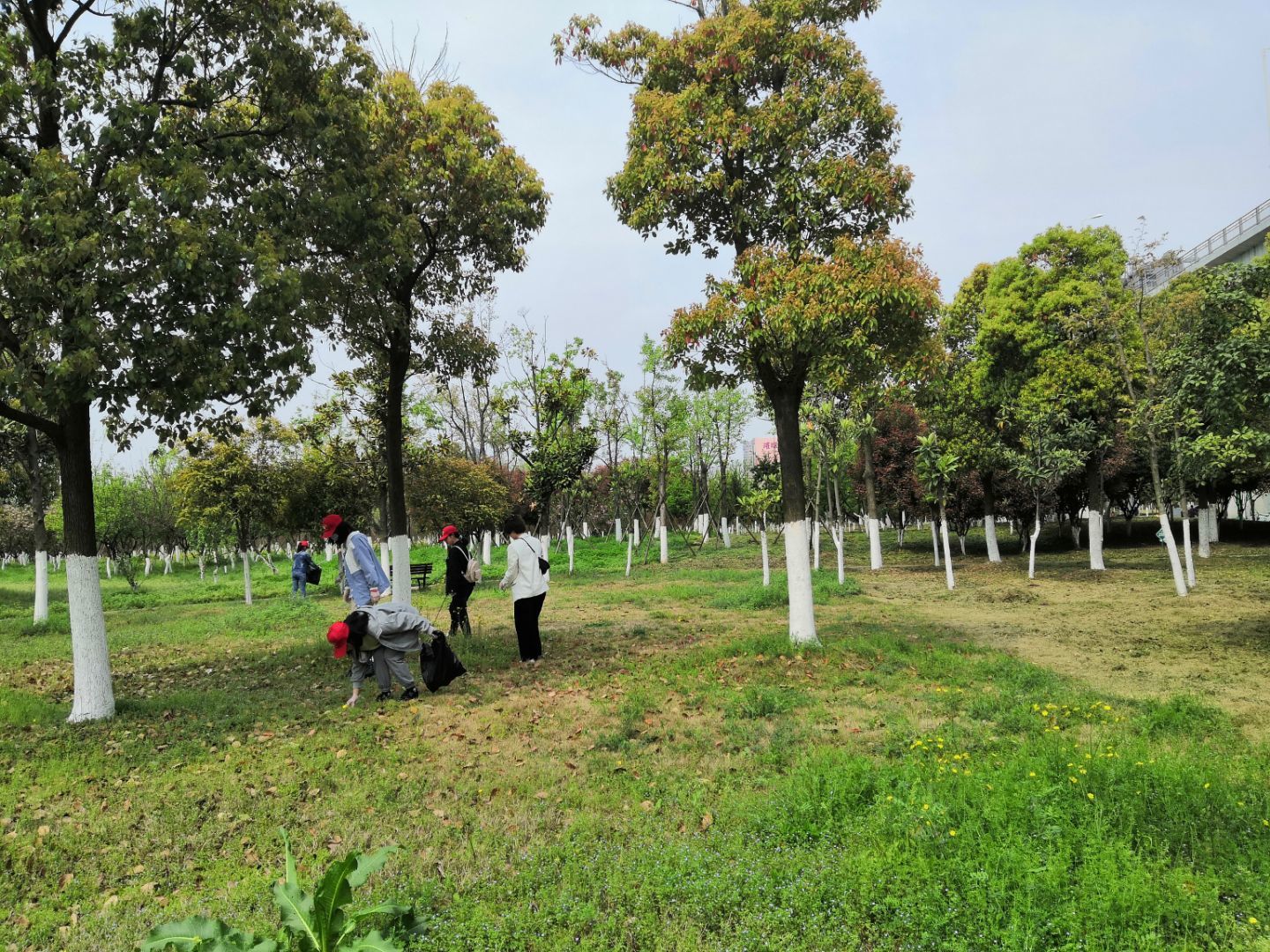 到达目的地之后,负责人将大家进行简单的分组,各位志愿者们头戴小红帽,手持垃圾袋和钳子,在无数次的弯腰和起身中,填满手中的一个又一个垃圾袋。最终经过志愿者们一个半小时的努力后,滨江公园的环境得以焕然一新。