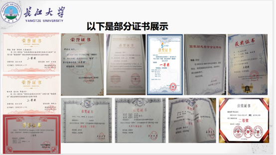 大约八十项校级及以上竞赛奖项,10项省级荣誉,5项国家级荣誉,6项专利,5篇论文。在科技文化节中,院级奖项约二十余项。约10位同学跟随老师做大创项目。班内近20位同学曾在校,院内任员工干部。
