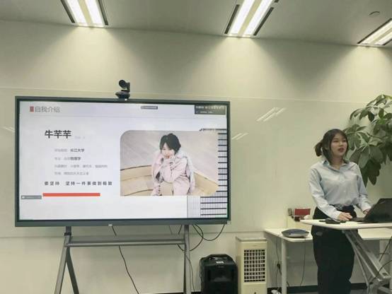 牛芊芊,女,中共党员,2023年毕业生,本科所学专业为应用物理学专业。在校期间,曾先后担任beat365官网中文版本老员工社团联合会主席团负责人以及beat365官网中文版本主席团成员职务。毕业后通过校招渠道面试,就职于震坤行工业超市(上海)有限公司,属于中国五百强企业,预计2023年12月上市。