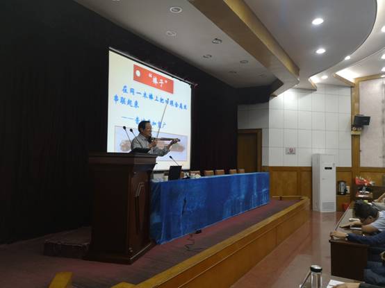 黄恕伯老师分别做了主题为《初中物理教学的总体设计与思考》,《优化初中物理概念教学的思考》的报告,从教学总体设计和概念教学两方面给公司师生和国培教师们介绍了基于学科核心素养的创新教学方法和技巧。特别是初中物理概念教学,黄老师着重讲了“创设情境”“思维加工”“基础训练”“实践应用”四个方面的课例分析,讲解细致入微,视频范例典型到位。黄教授还带上了自制的道具,现场表演魔术一个接着一个,用物理知识,揭秘“魔术”,展示了自制乐器并现场演奏,赢得了全场阵阵掌声。