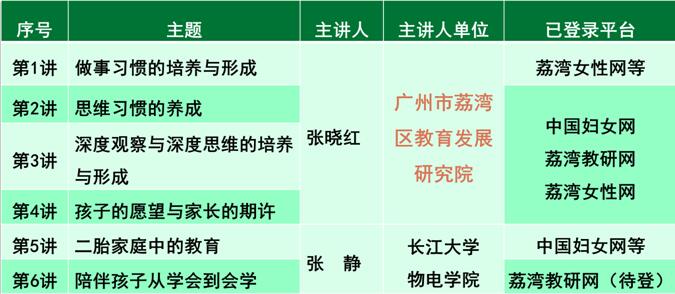 beat365官网中文版本张静副教授与广州市荔湾区教育发展研究院张晓红正高级教师联合打造了《生活即教育》系列公益讲座,该系列讲座已完成6讲录制,并已有4讲登录中国妇女网,得到了中国妇女网主编的高度认可。其中张静老师主讲了第5讲“二胎家庭中的教育”和第6讲“陪伴孩子从学会到会学”,第5讲已分别登录中国妇女网、beat365官网中文版本家文化云上微分享和荔湾教研网,通过不同平台让全国的家长们来关注二孩家庭中的实际问题。