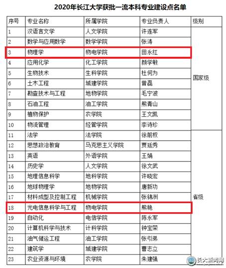 近日,教育部下发《教育部办公厅关于公布2020年度国家级和省级一流本科专业建设点名单的通知》,物电院物理学专业获批为国家级一流本科建设点,光电信息科学与工程专业获批为省级一流本科建设点,实现了国家级、省级一流专业全覆盖。