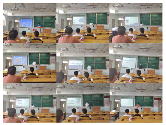 在导师代表介绍公司产品心得及学术讲座环节,裴启明副教授代表生物物理团队、雷磊副教授代表原子分子物理团队、郑定山副教授代表光电子器件团队、水涛副教授代表量子光学与精密测量团队、陈艳老师和杨康老师代表纳米光子学团队对各团队的基本情况、研究方向、获得荣誉及招生情况进行了介绍。
