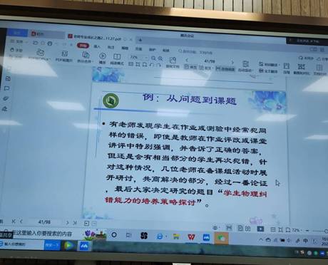 由于疫情影响,张晓红老师未能亲临现场,而是通过网络线上先向老师们介绍了教师发展的各个阶段及特征,对于教师专业发展提出了自己的见解;之后,张晓红老师又重点强调了专业发展的必备能力——课题研究,从课题研究的立意方法、上报流程、研究手段等步骤,结合自己多年来从事教育课题研究的经验,给老师们给出了自己的独到见解;除此,张晓红老师根据指导教师课题报告的经历,对于课题报告的常见问题也做出了独到分析,最后张老师对于老师的课题研究之旅给出了自己的期盼!