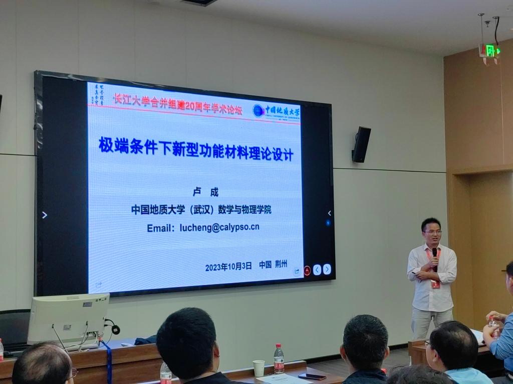 中国地质大学(武汉)卢成教授作了“二维功能材料理论设计与物性调控”的报告,分别就CALYPSO结构预测方法、静水压下富氢高温超导材料、非静水压下超硬/硬质材料等主题进行了深入探讨。