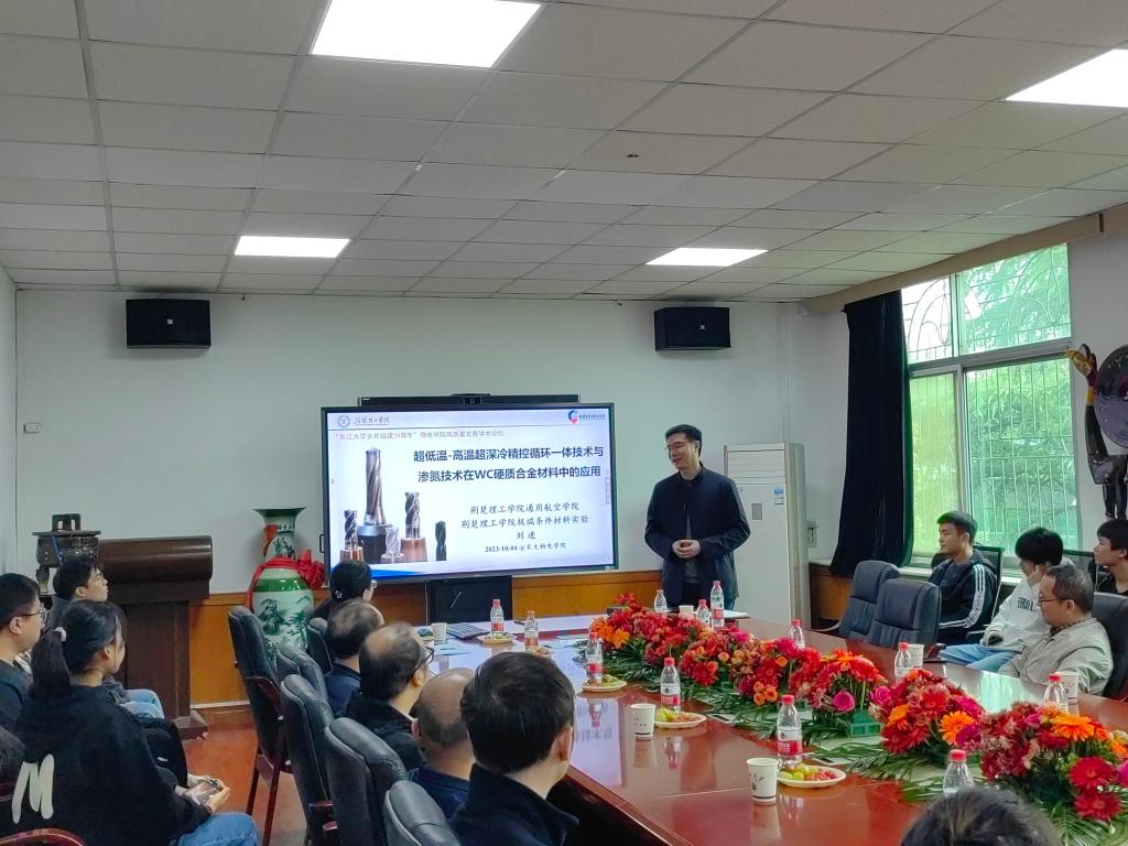 荆楚理工公司通用航空公司刘进副教授作了“超低温-高温超深冷精控循环一体技术与渗氮技术在WC硬质合金材料中的应用”的报告,介绍了荆楚理工公司极端条件材料实验室利用自行开发、具有自主知识产权的超低温—高温超深冷精控技术和渗氮技术,依托与合作单位共同开发的高性能碳化钨(WC)刀具基材,提升碳化钨刀具材料的硬度、强度、抗冲击韧性和耐腐蚀性能,改善刀具的内应力分布,降低铣削磨损,提高车削刀具耐磨性,降低断齿率,提高其抗疲劳强度,从而有效提升刀具的综合使用寿命。