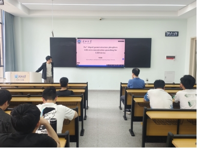 华永彬教授的报告题目是《Eu3+-doped garnet-structure phosphors with zero- concentration quenching for LED device》。红色发光区域在照明技术领域中起着关键作用。报告介绍了一类新型抗浓度猝灭的稀土Eu3+掺杂石榴石红色发光荧光粉,并对该荧光粉的晶体结构、光致发光特性及其白光发光二极管(WLED)应用进行了全面研究。有趣的是,所获得的样品展现出超高的色纯度、良好的热稳定性以及合适的内量子效率,并基于近紫外LED芯片封装出一种荧光粉转换型WLED器件。该LED具有 3271K的出色相关色温和适宜的显示指数,有望提升传统室内照明光源的性能。