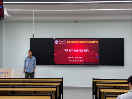 孙波副教授的报告题目是《环偶极子电磁特性研究》。动态环偶极子是由时变电流沿着圆环面的子午线流动而产生的,由于其电流的独特结构使其具有很多传统电偶极子与磁偶极子所不具备的特性。环偶极子的磁场呈现首尾相接的涡旋状,这就使得这一电荷-电流结构产生的磁场被很好的限制在结构内部,以实现近场的局域作用。利用超材料电磁参数可调控的特点实现环偶极子的设计,并将自然材料中微弱的环偶极子强度增强至可测量范围,甚至高于电偶极子与磁偶极子几个数量级。从而实现许多新奇的特性,如谐振透明、超高Q值、高灵敏度传感、吸波特性以及与电偶极子干涉产生的无辐射效应。