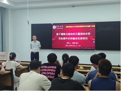 (通讯员 裴启明)6月21日上午8:30,beat365官网中文版本2025年求实导师学术沙龙第十二期在16教B101教室举行。本次沙龙邀请了硕士生导师黄海博士做了题目为《基于硼氮共掺杂的石墨烯纳米带双极器件的热输运性质研究》学术报告。