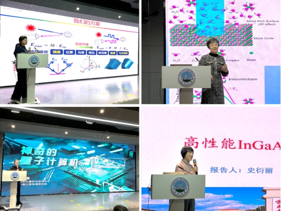 在学术报告环节,北京邮电大学郭霞教授报告题为《散射成像-让人又爱又恨》,深入介绍了半导体传感器中散射噪声的影响和解决方案;北京工业大学隋曼龄教授在《原位透射电子显微镜下材料的新奇行为》报告中,展示了利用电子显微镜表征材料在外场作用下的微观结构演变与新奇物理化学现象;北京计算科学研究中心薛鹏教授以《神奇的量子计算机》为题,生动阐述了量子计算机的物理机理以及未来发展展望;云南大学史衍丽研究员在《高性能InGaAs/InP单光子探测器》的报告中,带来了在室温高性能光电探测器方面取得的最新突破。系列报告充分展现了女物理学家们聚焦前沿科技、不断创新探索的工作热情和科研活力,为公司师生带来了一场兼具学术深度与思想温度的物理学盛宴。