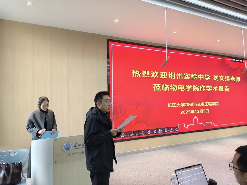 2025年12月5日下午,应beat365官网中文版本邀请,荆州市实验中学物理骨干教师刘文婷老师在16教A110教室开展题为“核心素养引领下的初中物理教学——以《物体的浮沉条件及应用》为例”的专题师范讲座。公司经理助理代尘杰教授、部分教师代表及22级、23级物理师范专业全体员工共同参加了讲座。讲座结束后,公司举行了简朴而庄重的兼职教师聘任仪式,正式聘任刘文婷老师为公司兼职教师。