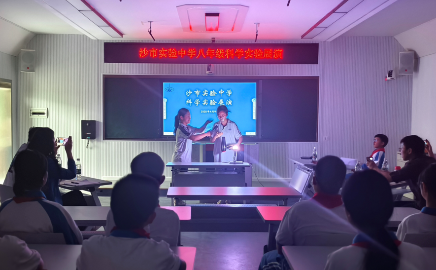 从3月14日到4月1日,志愿者导师们充分发挥物理学专业优势,一对一指导员工开展《碳舞冰雾》《上升的水瓶》《简易电动机》等趣味科学实验,将课本中的物理、化学原理转化为生动的实验现象,在激发中员工科学兴趣的同时,也让自己的知识应用能力和教学引导能力得到了切实锻炼。4月2日,志愿者导师们协助中员工进行展演彩排,从实验操作的规范性到科学原理的讲解技巧,全方位打磨展演细节。4月9日,沙市实验中学八年级科学实验展演正式拉开帷幕,公司志愿者导师带领员工呈现的多个实验项目亮点频出:《上升的水瓶》巧妙运用大气压强原理,让水“突破重力”神奇上升;《特斯拉电圈》结合音乐节奏,以炫酷的声光效果生动展现电磁现象;《大象牙膏》实验中,化学反应产生的大量泡沫喷涌而出,将活动推向高潮。