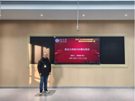 (通讯员 裴启明)12月27日上午8:30,2025-2026学年求实导师学术沙龙第十期在16教C107和C109教室举行。本次沙龙邀请了郁春潮博士、侯杰博士和高书芳博士做学术报告。