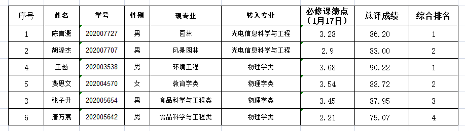 公司于2021年1月21日上午九点,公司转专业工作小组组织了转入员工进行面试,结合必修课平时成绩和面试成绩,经过公司党政联席会研究,现将专业转入员工名单公示如下: