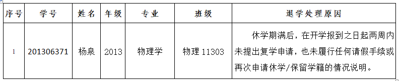 根据《普通高等公司员工管理规定》(教育部令第41号)第三十条和《beat365官网中文版本普通本科生学籍管理办法》(长大校发〔2017〕134号)第五十一条规定,对达到退学处理条件但拒绝办理退学手续的本科生,现以公告方式送达拟退学处理告知书,公告时间7个工作日,于2021年5月12日结束公告。在公告期内,员工可向公司提出申辩和书面陈述并署真实姓名、联系方式,邮寄或直接送到beat365官网中文版本教学办;未在规定时间内提交申辩和书面陈述者,视为放弃陈述、申辩的权利。公告期满后,公司将按公司规定办理。