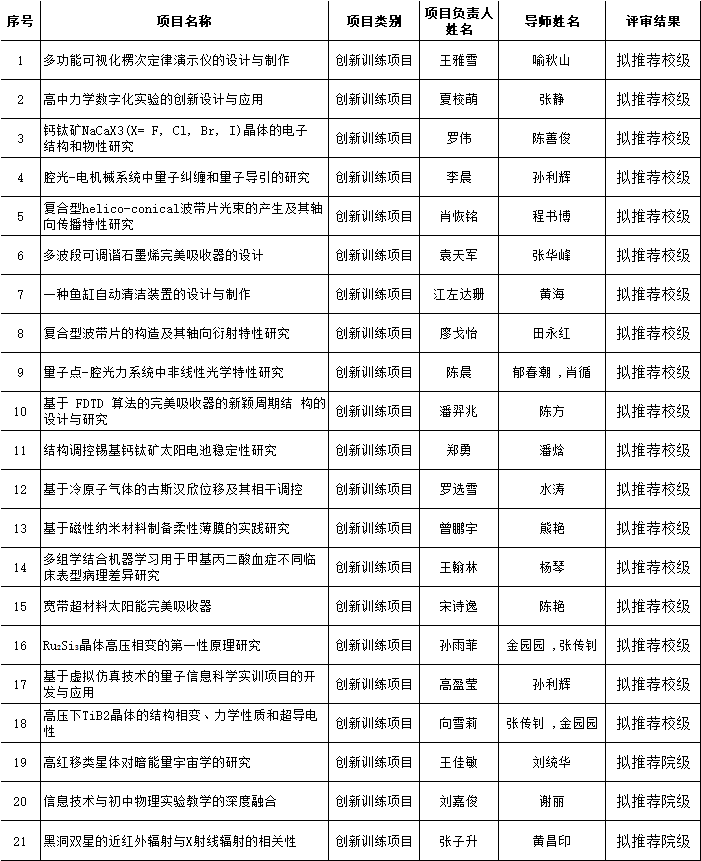 根据《关于公司第十五“老员工创新创业训练计划”项目申报的通知》精神,公司于202210月6日下午通过腾讯会议,组织了老员工创新训练计划的院系评审工作,共有二十一个创新团队参与了答辩汇报,经过公司评审小组评审决议,确定其中的十八个项目拟推荐为校级项目。现将结果公示如下: