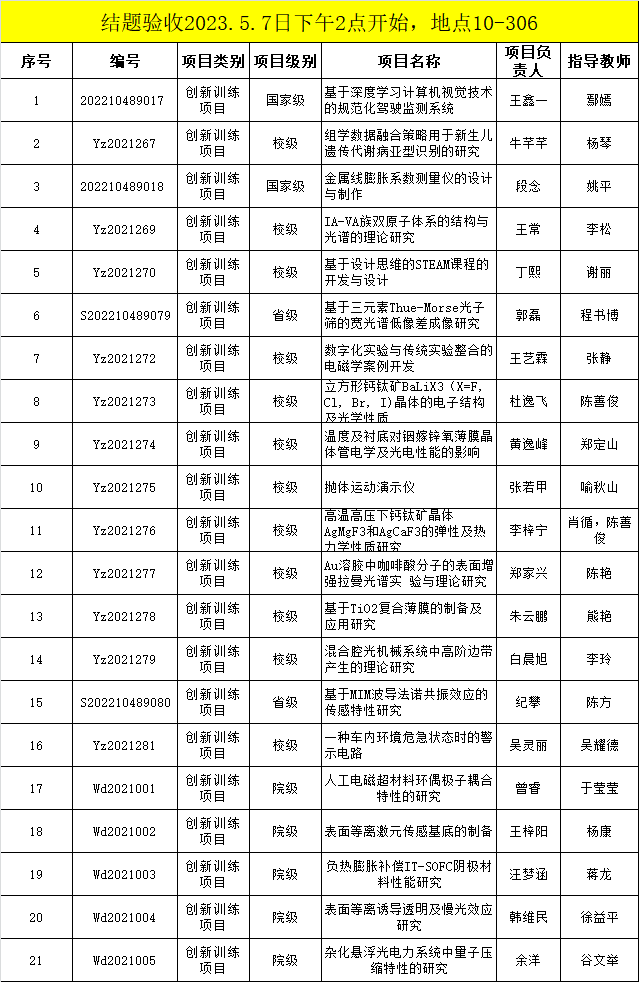 ​2023年老员工创新创业训练计划项目结题验收、阶段检查答辩安排