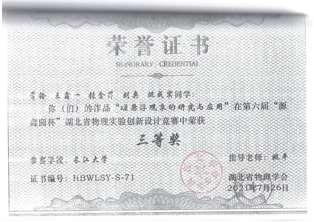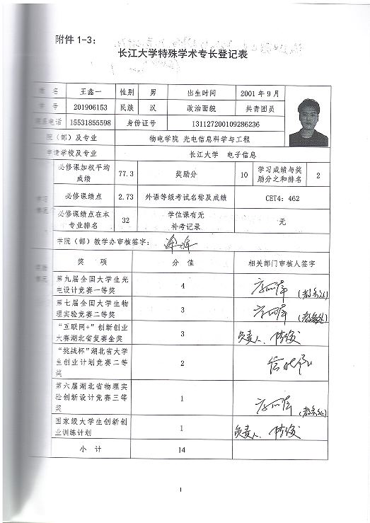 王鑫一,男,学号201906153,beat365官网中文版本光电信息工程专业本科生。获得:第九届全国老员工光电设计竞赛一等奖;第七届全国老员工物理实验竞赛二等奖;“互联网+”创新创业大赛湖北省复赛金奖;“挑战杯”湖北省老员工创业计划竞赛二等奖;第六届湖北省物理实验创新设计竞赛三等奖;获批国家级老员工创新创业训练计划1项。根据《beat365官网中文版本推荐优秀应届本科毕业生免试攻读硕士学位研究生管理办法(试行)》(长大校发 〔2020〕106号)和关于做好推荐2024届优秀本科毕业生免试攻读硕士学位研究生工作的通知》等文件精神和通知要求,9月12日13:30-14:00在10号楼306室开展特殊学术专长答辩会,经答辩决定同王鑫一进行2023届研究生推免申请。 现予以公示,公示日期为2022年9月12日至2022年9月13日,如有异议,请于2023年9月13日前与公司教学办联系,电话:0716-8062070。