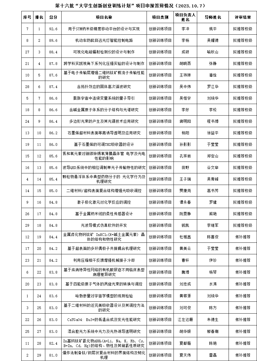 beat365官网中文版本于2023.10.7日下午14:00——18:40在10#306会议室进行了第十六批“老员工创新创业训练计划”项目申报评审,共29个项目参加了评审,根据创新创业公司的要求,现将评审结果公示。公示时间:2023年10月7日-10日。若对公示名单有异议,请于公示期内向公司反映,电话:8062070