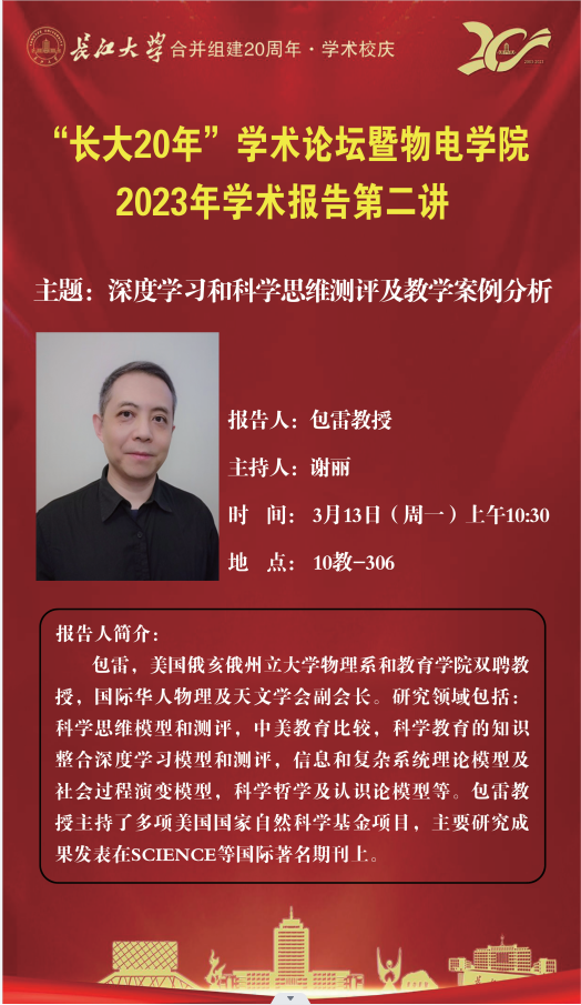 “长大20年”学术论坛暨​2023年学术报告第二讲:深度学习和科学思维测评及教学案例分析