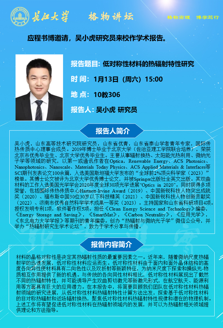 ​2024年学术报告第一讲:低对称性材料的热辐射特性研究