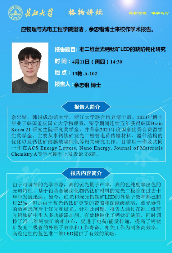 ​2024年学术报告第四讲:准二维蓝光钙钛矿LED的缺陷钝化研究
