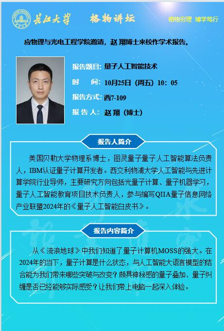 ​2024年学术报告第十九讲——量子人工智能技术