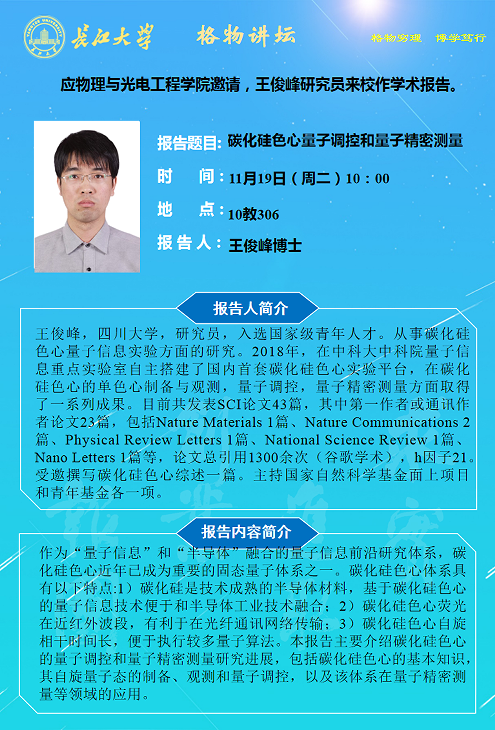 ​2024年学术报告第二十三讲-碳化硅色心量子调控和量子精密测量