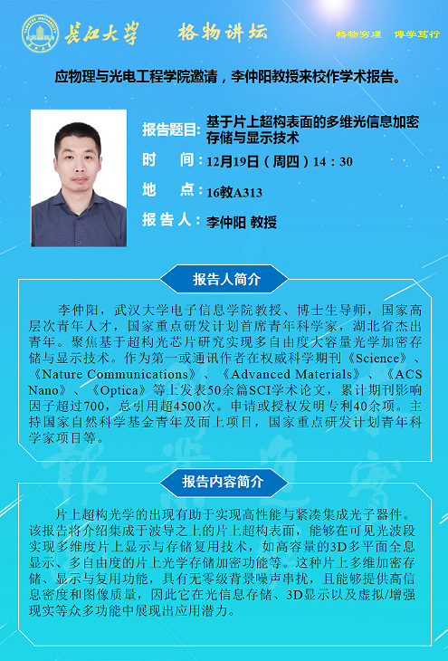 ​2024年学术报告第二十五讲-基于片上超构表面的多维光信息加密存储与显示技术