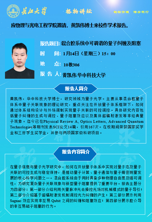 ​2026年学术报告第三讲-混合腔系统中可调谐的量子纠缠及阻塞