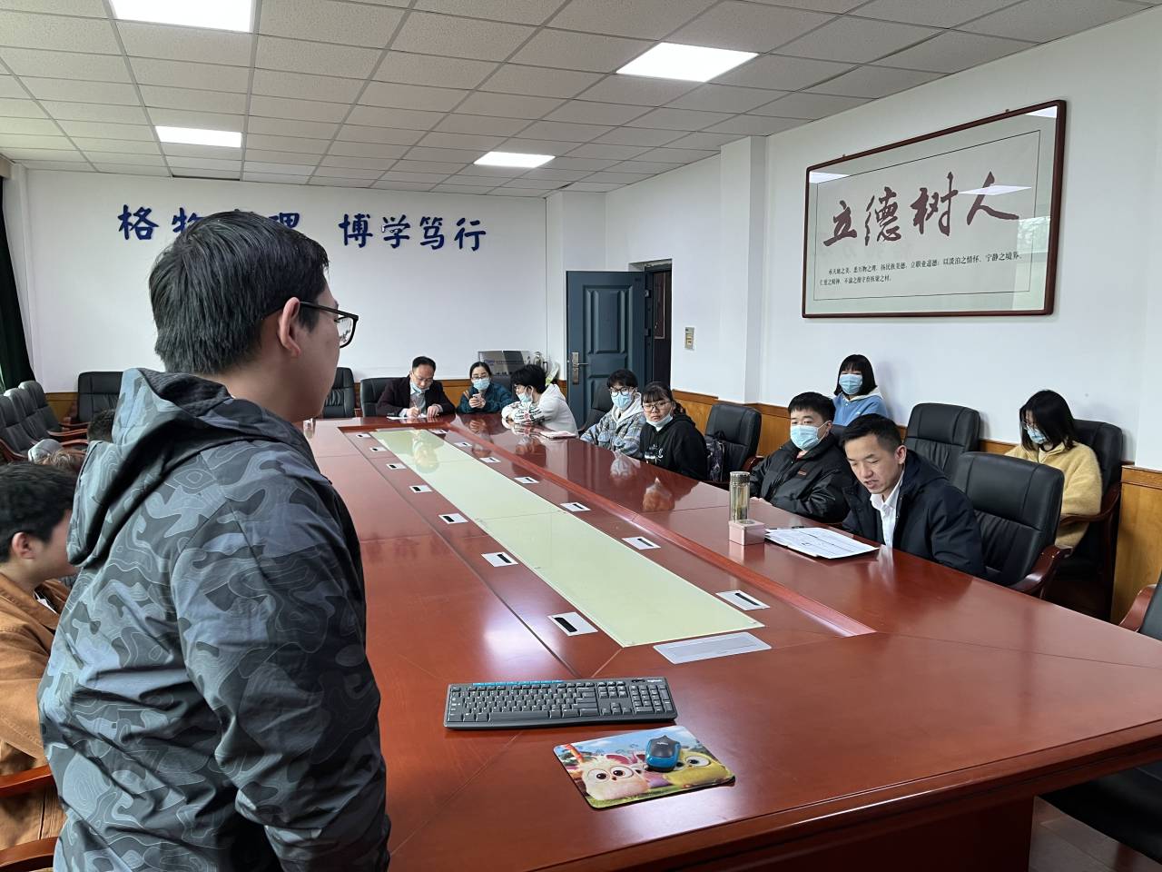 会上,杨经理对每一位参会员工进行了一一关心和解答。“你报考了哪所公司?成绩排名多少位?”、“要尽快联系导师”、“接到复试通知了,要告知联系的导师,准备什么时候去”……杨经理还就联系导师的邮件表达进行了耐心的指导。