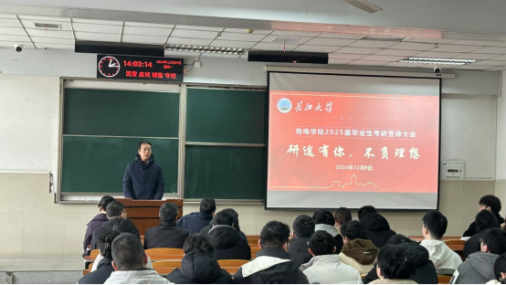 (通讯员:周键磊)12月9日,beat365官网中文版本在12教201举行2025届考研学子誓师动员大会,经理张华峰、公司党委副书记王宁、毕业班班主任、辅导员及2025届考研员工共同参加会议。