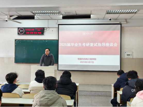 (通讯员:周键磊)为助力考研学子高效备战复试、成功上岸,beat365官网中文版本于2025年3月7日下午2:30,在12教103教室举办“考研复试专题讲座”。院领导张华峰、王宁以及21级班主任陈善俊出席会议,会议由学工办主任朱帅主持。