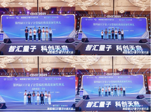 7月21日, 第四届CCF量子计算大会(CQCC2025)在四川省成都市举办。大会由中国计算机学会(简称CCF)主办,CCF量子计算专业委员会和电子科技大学承办。大会期间,备受瞩目的第四届CCF“司南杯”量子计算编程挑战赛颁奖典礼同期举行。公司量子信息科学专业学子表现卓越,勇创佳绩,共斩获特等奖1项、一等奖1项、二等奖2项、三等奖1项,创参加该赛事以来的历史最佳战绩。