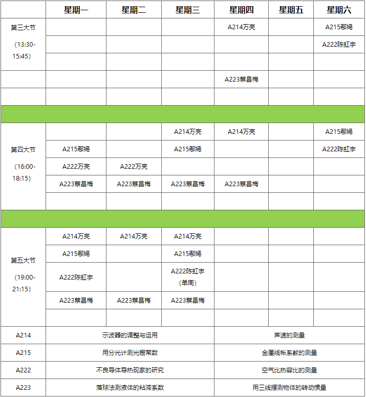 2024-2025-1学期武汉校区大学物理实验课表