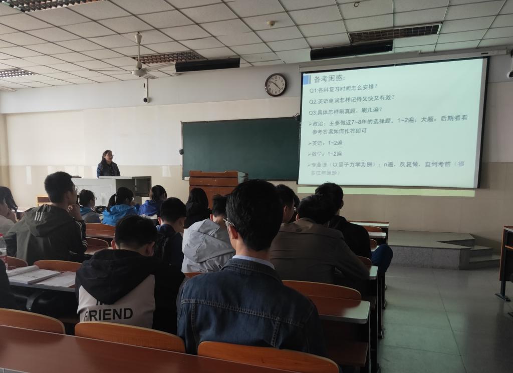 考研优秀学长学姐经验分享交流会,在一定程度上为有考研意向的同学指明了学习方向和考研技巧,使同学们对考研过程有一个更加清晰的认识和了解。