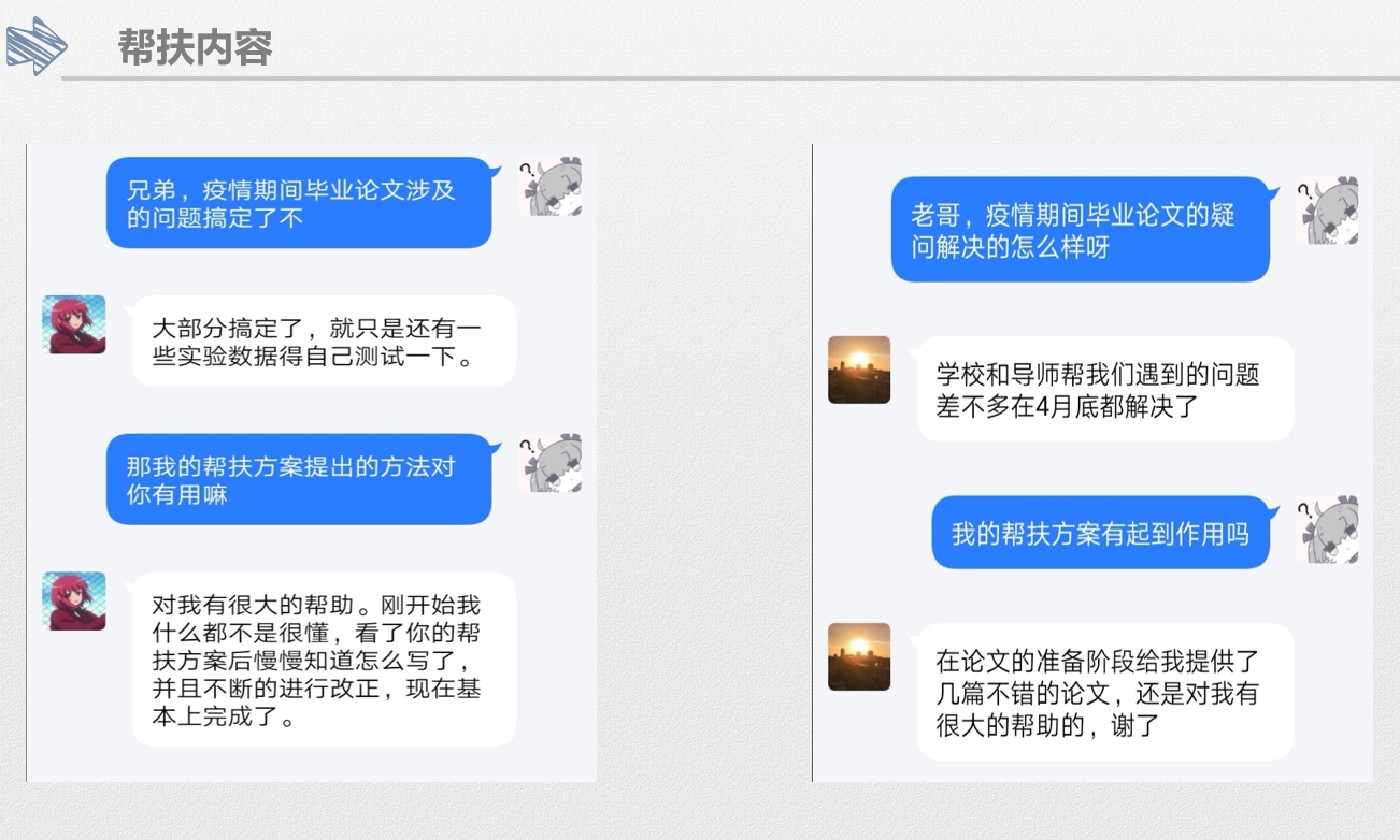 此次帮扶活动反响非常不错,帮扶对象纷纷表示自己得到了很大帮助。而帮扶小组负责细致的付出也获得了参会同学的纷纷点赞。