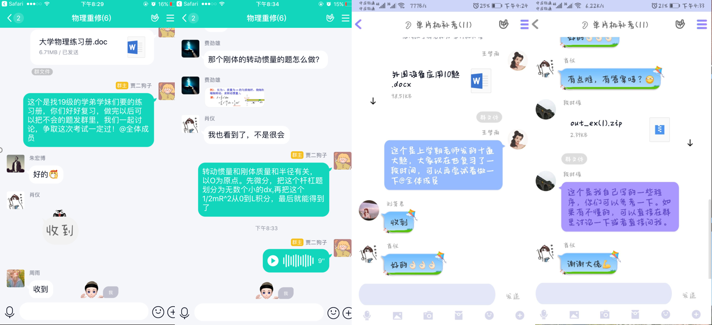 而非毕业年级负责人则分别针对未通过英语四级考试和挂科需要重修的同学进行精准帮扶,他们建立“四级必过”、“免挂联盟”等学习帮扶小组,通过QQ、百度网盘等线上途径分享学习笔记,组织在线答疑,督促作业打卡。