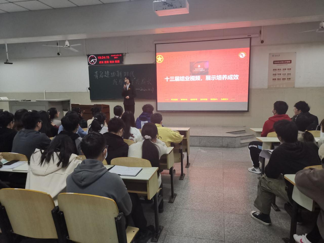 本次活动由青马班的黄华宝、华丹同学主持。活动中,两位宣讲人为同学们分享了他们在青马班生活与学习中的的点点滴滴与感悟。他们带领大家学习传达了《关于遴选beat365官网中文版本青年马克思主义者培训班第十五期学员的通知》,同时也给大家讲解了青马班要求,遴选流程以及培养形式,让同学们对青马班有了基础的了解。他们回顾了自己在青马班的经历,给同学们分享了许多经验与感悟。活动中,他们播放了在青马班学习、生活与成长的记录视频,同学们颇有感触。