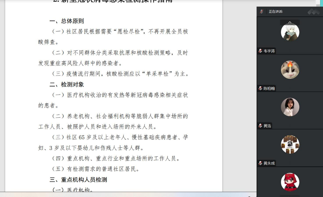 班会中,辅导员、班主任提醒了员工开学报到注册时间,对员工返校、延迟到校等工作予以分类讲解,要求员工返校前坚持7天连续健康打卡,强调严格按照要求填报返校行程,做好提前返校申请、延迟到校请假手续;各班级在班主任指导下认真学习了国务院联防联控机制综合组2023年1月7日印发的《新型冠状病毒感染疫情防控操作指南》,温馨提示员工做好个人健康防护;指导正确认识和积极面对返校心理健康,科学安排学习生活时间,做好宿舍安全卫生。