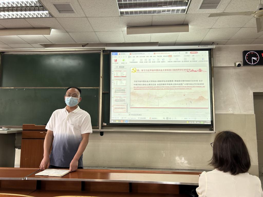 同学们学习了习近平总书记给中国农业大学科技公司同学们的回信,信中指出党的二十大对建设农业强国作出部署,并对青年寄予厚望。广大青年纷纷表示要志存高远、脚踏实地,把课堂学习和课外实践结合起来,厚植爱农情怀,练就兴农本领,在强国建设、民族复兴的大舞台上建功立业,为全面建设社会主义现代化国家、全面推进中华民族伟大复兴贡献青春力量。