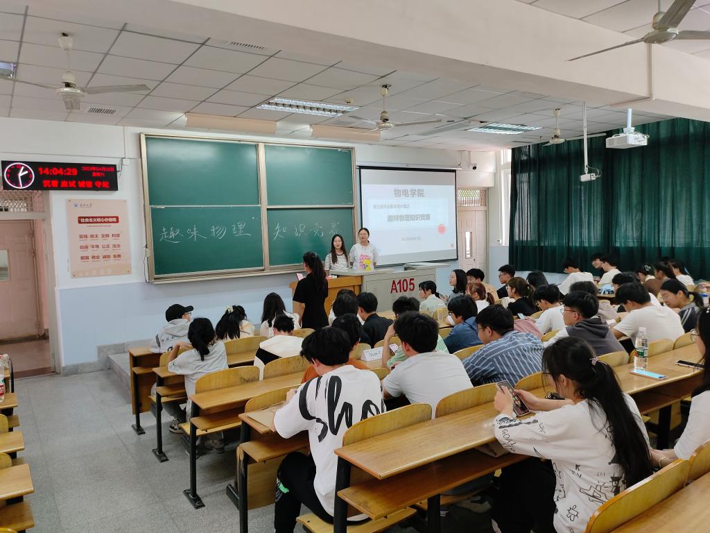 其中最受同学们关注的比赛项目当属趣味物理知识竞赛。在知识抢答环节中,参赛选手面对面建群,通过抢红包的方式获得答题资格。“这样的抢答方式真是太新奇啦,大家都充满了答题的热情!”一名参赛选手说到。随后是答题卡环节和趣味小实验,选手们分工明确,相互配合,充分体现了物电员工的个人能力和团结精神。