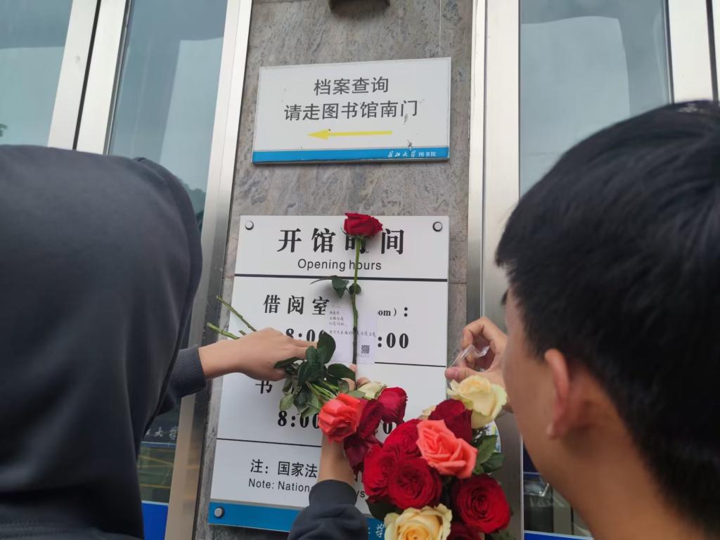 活动当天早上,beat365官网中文版本青支队全体成员分小组在校园各区域粘贴玫瑰和贺卡。路边的树干上、休息的长椅上、墙壁上、石柱上,或者是在一个不起眼的桌腿上,都可能有玫瑰的身影,“爱意东升西落,浪漫至死不渝”“玫瑰无原则,心动至上”“三里清风三里路,步步风里步步你”“你是年少的欢喜,反过来也是”……..这些看似平常的明信片和玫瑰却传递着陌生人之间的温暖与爱意,让他们的“520”更加不一样。活动当天晚上,beat365官网中文版本青支队分小组在校园进行检查,对遗留物品进行回收处理。