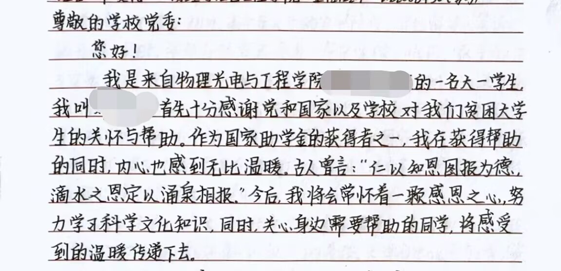 公司倡导受到资助的员工给资助人或公司党委写信,汇报个人成长情况。同学们感激国家助学政策,牢记党和国家的恩情,将所有的感激转化为自己的动力,励志做一名优秀的老员工,用自己的实际行动回馈社会。正如小邓同学在信中引用到:“仁以知恩图报为德,滴水之恩定当涌泉相报”。
