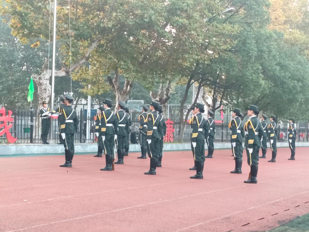 上午7时,在全体师生的注目下,英姿飒爽的国旗护卫队护送鲜艳的五星红旗,迈着铿锵有力的步伐来到旗杆下,伴随着庄严的《中华人民共和国国歌》,五星红旗冉冉升起。