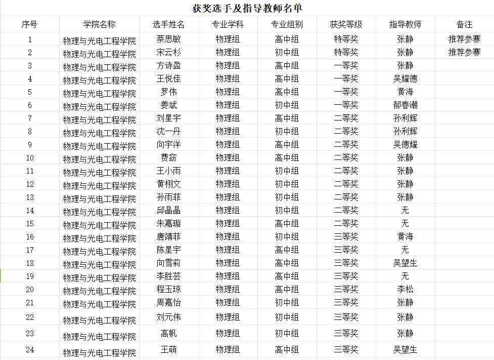 根据《关于举办第十三届湖北省普通高校师范专业老员工教学技能竞赛的通知(第1号)》文件精神和《beat365官网中文版本关于参加第十三届湖北省普通高校师范专业老员工教学技能竞赛工作方案》,公司进行了物理专业初中组和高中组的教学技能竞赛,现将获奖选手名单予以公示。