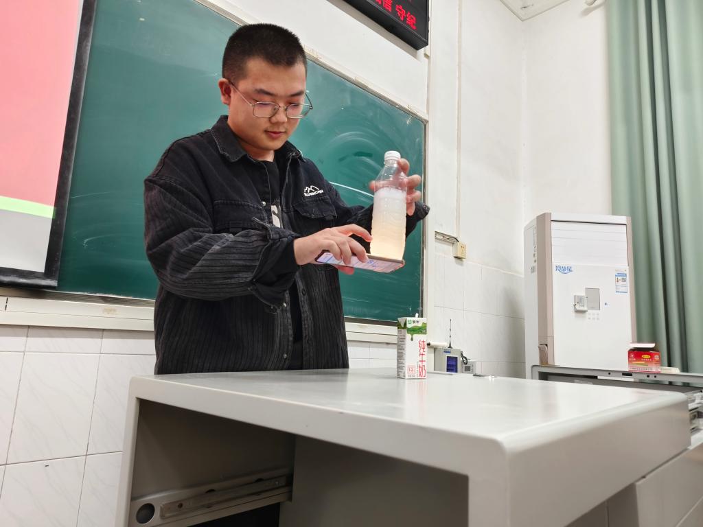 光电32404班王延续别出心裁,以湿纸在黑板划痕迹引出“深湿问题”,详细介绍这一概念及其在生活中的应用,激发了大家对特殊物理现象的探索热情。光电32403班兰飞翔则通过牛奶与水的丁达尔实验,让观众直观感受物理实验的奇妙,将抽象的物理知识转化为生动的视觉现象。物理32402班向亦寒着眼于生活中随处可见的物理现象,从光的传播、水面反射、城市夜景到风吹树叶声、掌声传递等,展示物理与日常生活的紧密联系,让大家意识到生活中物理的美。量信32401班朱景旭最后登场,介绍量子超距通讯这一前沿科技,拓宽了参与者的物理视野,引发对未来物理发展的无限遐想。